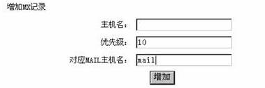 2-3-3:添加MX记录。点击图标,填写“主机名”,“优先级”,“对应MAIL主机名”后,点击按钮。